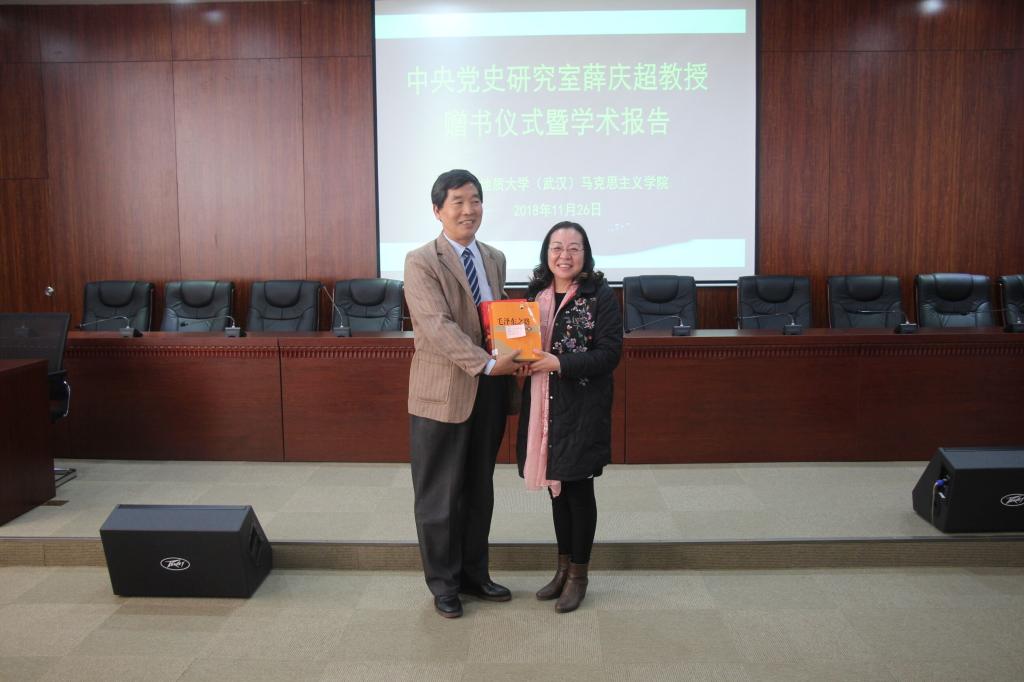 2018年11月26日下午14:30,中共党史研究室薛庆超教授赠书仪式在东区教学综合楼A708举行,仪式结束后薛庆超教授又做了两场学术报告 。报告由阮一帆教授主持,今年会官网院长高翔莲,其他教师、研究生及本科生到现场参加了学习交流。