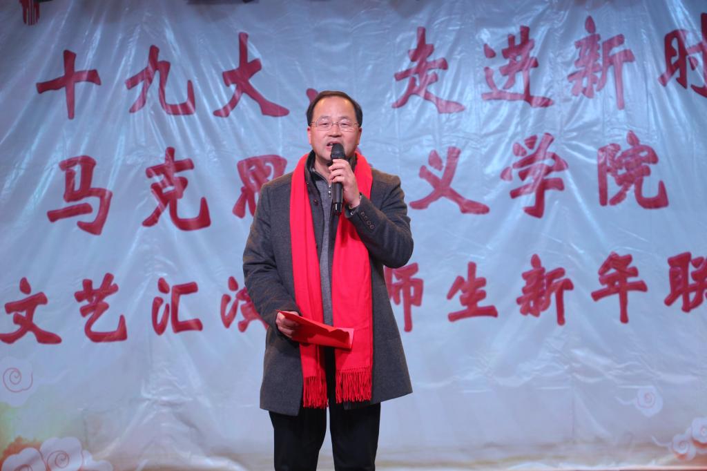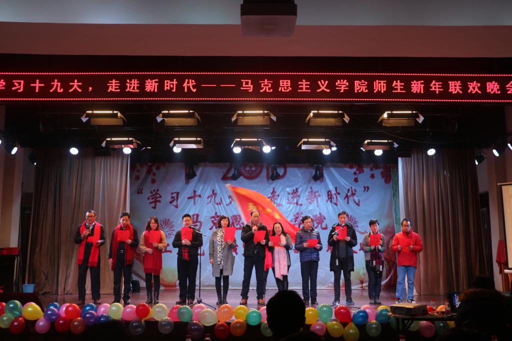 晚会在今年会jinnianhui官网政治理论教研部带来的《伟人诗篇,毛泽东诗词》深情朗诵中拉开帷幕;紧接着,到场领导为今年会官网优秀老师们颁奖并表示祝贺。之后,何光彩书记为本次晚会致辞,他对今年会官网2017年取得的成就表示肯定和衷心的祝贺,并祝愿今年会官网在2018年能取得更好的成绩。