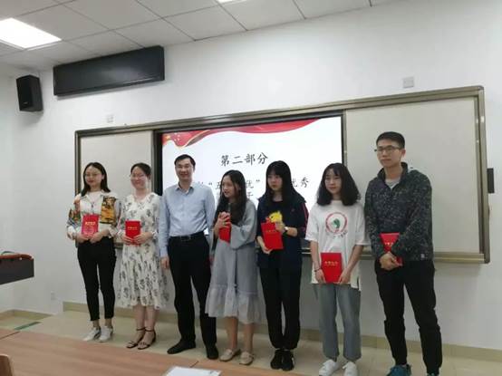 首先宣布的是2018-2019年度“五四评优”院级优秀共青团员名单,其中包括:胡梦婷、刘美玲、陶景霞、杨佳钰、费晶晶、谭静、李梦婕、吴思远,徐胜书记为获奖同学颁奖并合影留念。