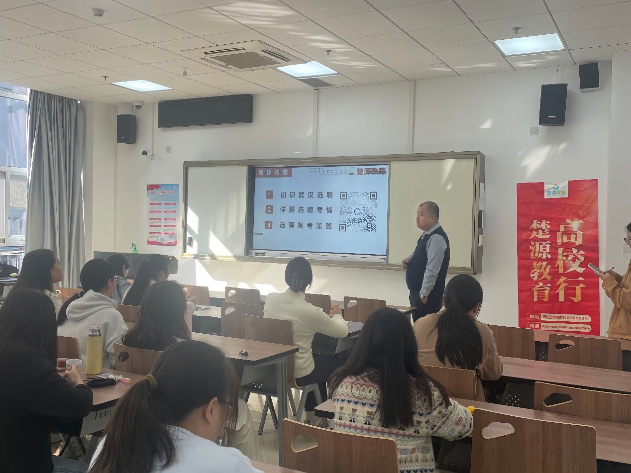 本次活动邀请到了楚源教育的首席面试官诸葛清老师和成功上岸武汉市选聘生的优秀校友魏运军为同学们作了精彩的指导与分享。