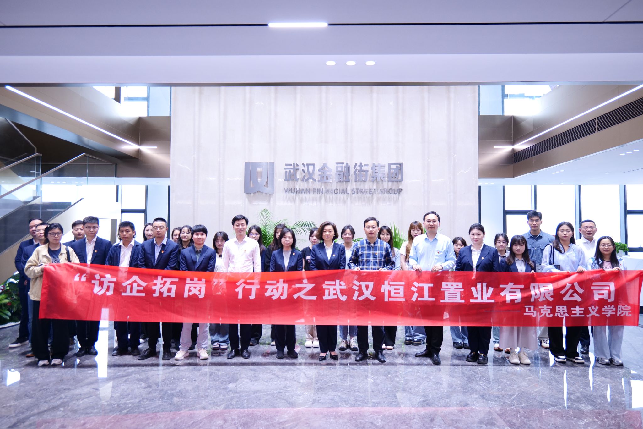 (通讯员:姚晟、侯玲玲、陈越、何双林)为推动学生就业工作,拓展学生实习实践机会,引导学生加深对于相关企业行业的了解,4月24日上午,学院党委副书记武彦斌,团委书记姚晟以及近20名学生走访了武汉兴达房屋开发实业股份有限公司,开展访企拓岗、合作交流和校友回访。