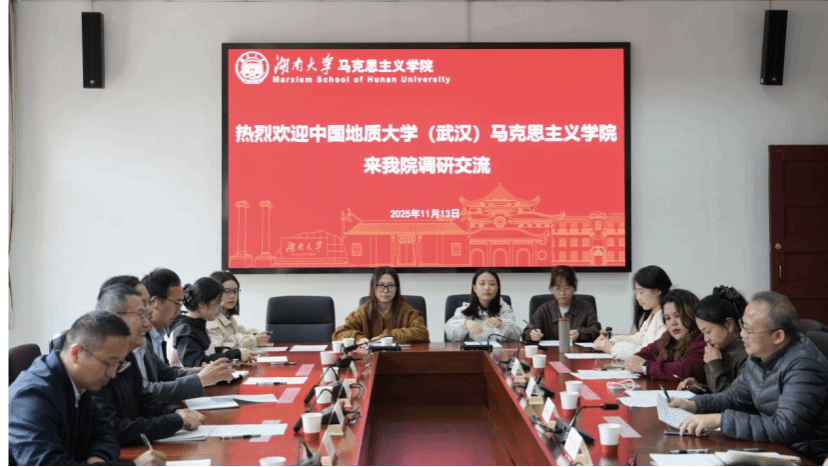 下午,研学团队转赴湖南大学继续学习交流。双方就学生党建、日常思政、就业创业、特色品牌开展交流研讨。
