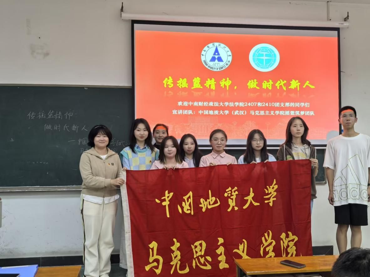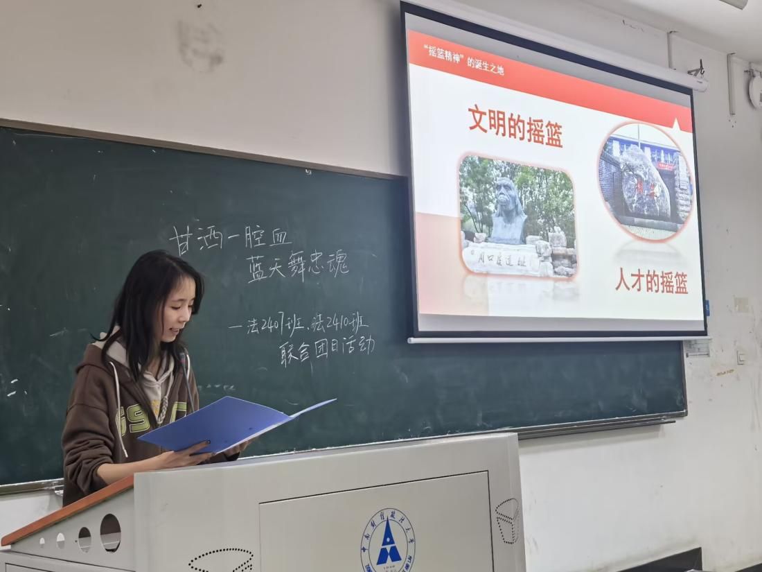 2024年11月14日16点20分,今年会jinnianhui官网第十五期红色之声“摇篮筑梦”团队在线下进行了主题为“生命安全主题教育”、“甘洒一腔血,蓝天舞忠魂”和“传摇篮精神,做时代新人”的线下宣讲,团队成员郭雅婕、李瑞雪、席海冰、辛汪洋、朱一婷担任主讲人,中南财经政法大学法学院2407和2410团支部参与本次活动,共计116名同学。