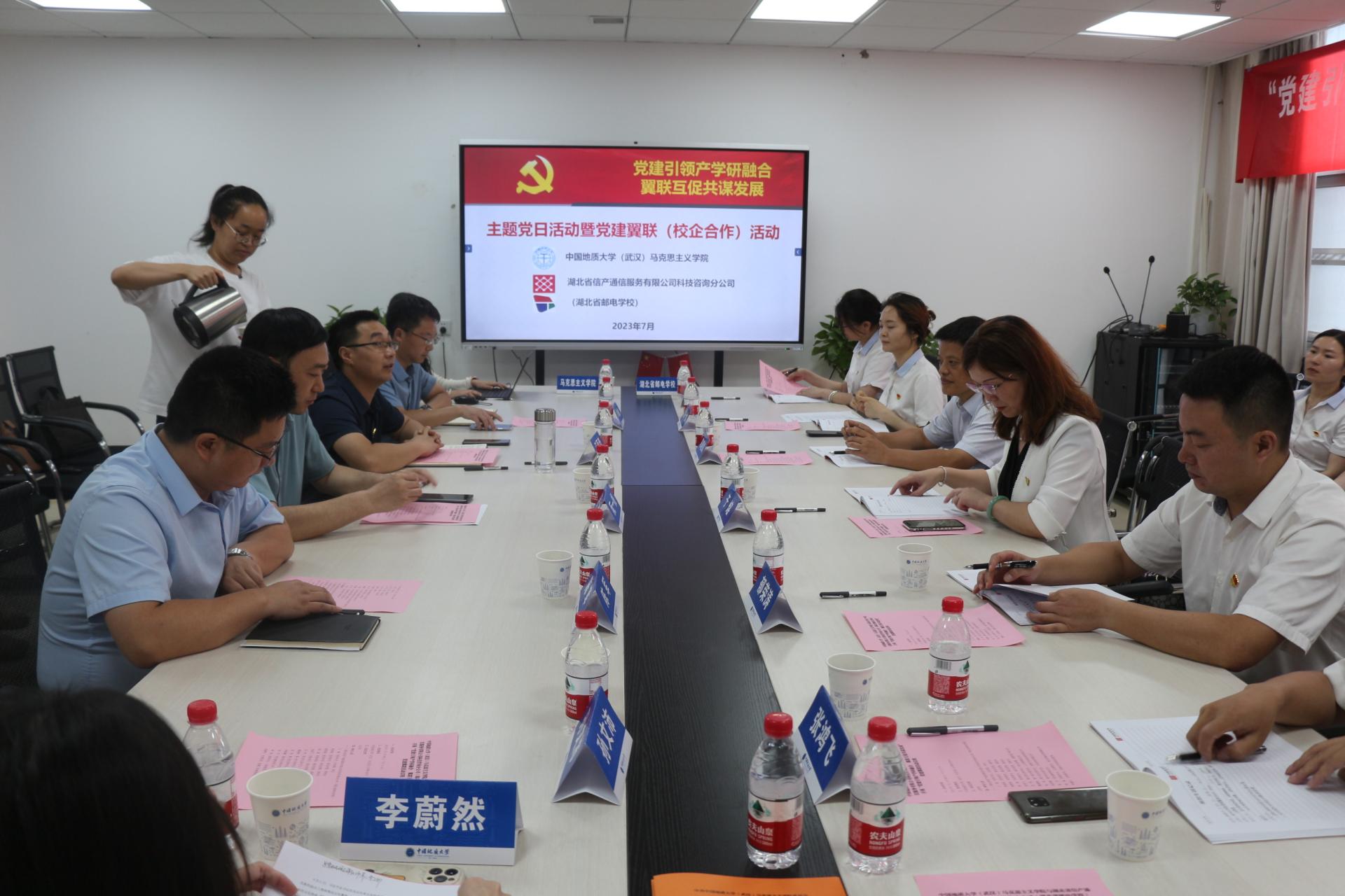 (通讯员郑国琴)7月5日,今年会官网与湖北省信产通信服务有限公司科技咨询分公司(以下简称湖北省邮电学校)开展“党建引领产学研融合、翼联互促共谋发展”党建翼联主题活动。湖北省邮电学校党委书记、总经理、校长于熔,副校长陈晓斌、张鸿飞及三级单位党支部负责人,今年会官网领导班子及三级单位党政负责人参与活动。党委书记汪再奇主持活动。