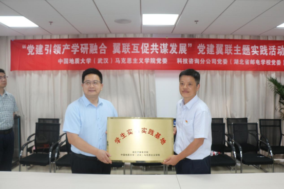 党委书记汪再奇与湖北省邮电学校于熔校长代表双方签订了党建翼联合作协议签订。陈军副院长代表学院为湖北省邮电学校颁授“学生实习实践基地”铜牌。