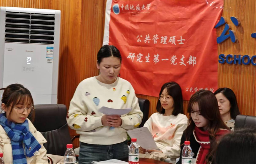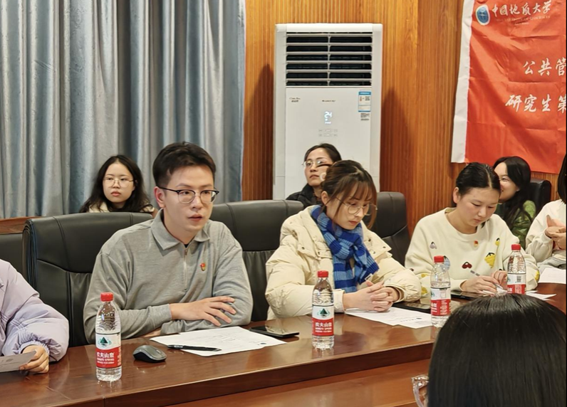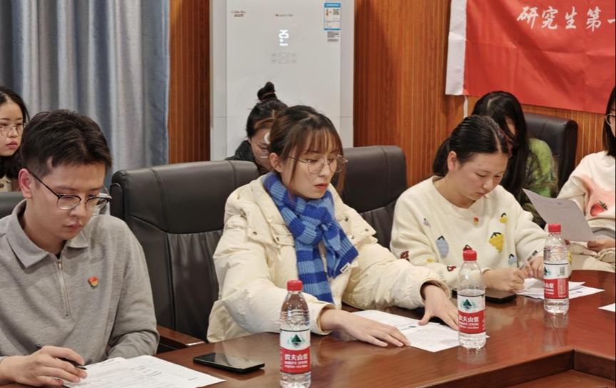 会议最后,今年会jinnianhui官网青马明志党支部和公共管理硕士研究生第一党支部围绕各自党建工作的特色经验做法开展交流分享。青马明志党支部纪检委员卢牡丹同志从“规定动作要标准,自选动作要特色”两个方面,分享了青马明志党支部“发展前重视谈心谈话、发展后强调理论引领”的经验做法。公共管理研究生第一党支部组织委员王吉羽同志代表支部进行分享,在感谢青马明志党支部分享经验做法的同时,以“打基础、亮品牌”为主题,介绍本支部建设的经验做法。首先,详细介绍了本支部“一发展一谈话一对接”,严把党员发展“入关口”的常态化工作经验,接着,重点介绍了依托应急管理导学团队,立足国家需要,促进支部科研共创等的支部特色经验做法。