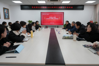 武彦斌介绍学院学生党建工作整体状况。他从党员构成、支部设置、特色活动、师生党支部结对领航、样板党支部培育、典型选树等方面介绍了学院学生党建的基本情况;他指出,在学校深入推进“一融双高”背景下,在各党支部支委调整和“红色引擎”党建办公室学生骨干调整的背景下,需要结合学生党建过程中存在的短板弱项,通过专业培训,进一步凝聚师生共识,提高思想认识,掌握党建工作方法,提升党建工作技能,为学院党建工作迈上新台阶提供有力支撑。
