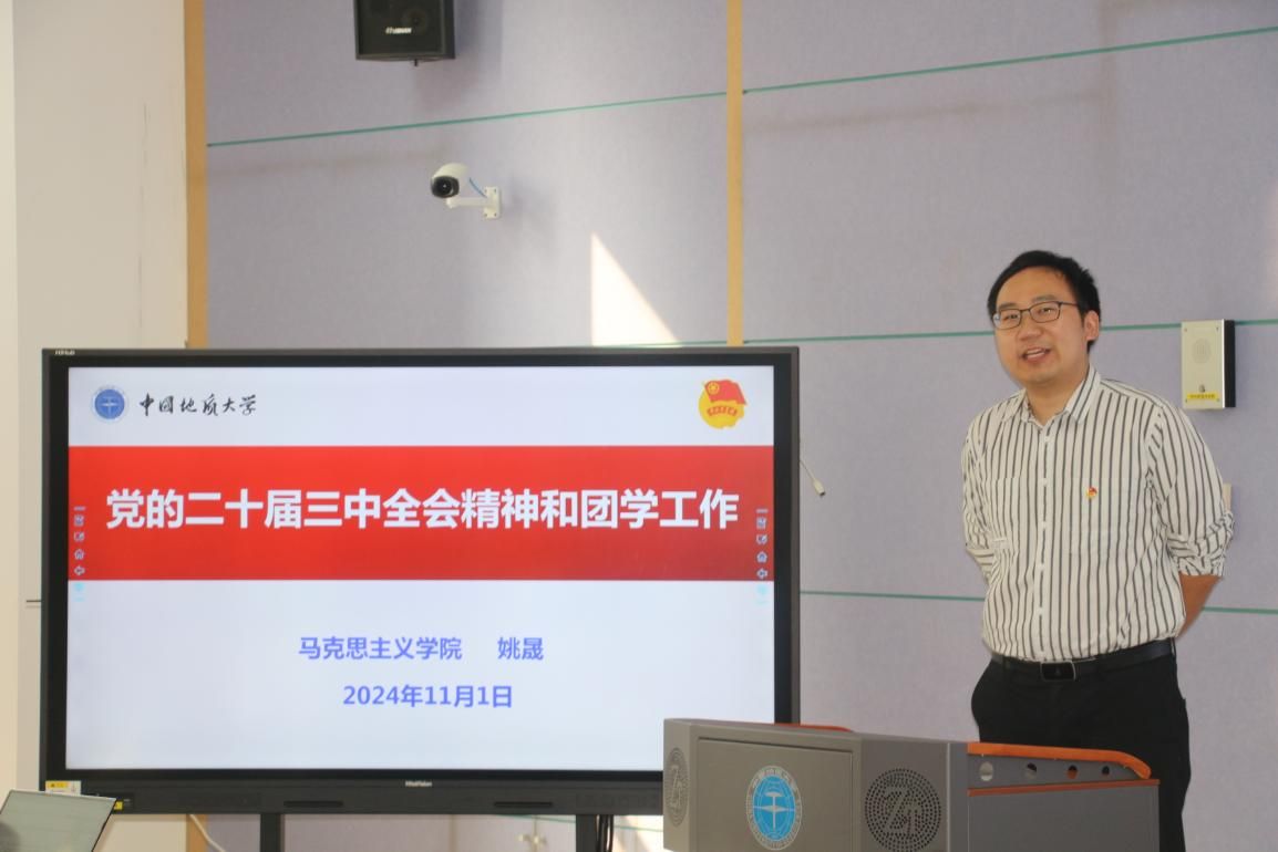 接着,由今年会jinnianhui官网团委书记姚晟为同学们讲解“青年骨干的本职工作和团学工作”。在这一部分,他带领同学们深入学习了党的二十届三中全会精神并用以指导同学们深入理解团学工作改革的重要地位和意义。姚老师强调,作为团学工作的重要主体,青年学生骨干被赋予了重大使命,承担着组织制度建设、推动部门持续发展的重大责任。此外,他还向同学们分享了自己的团学工作生涯,讲述了自己在这段经历中的成长与收获。他讲到,自己做学生工作是源自于对团队的不舍和对继续提升的执念,是源自于找到学习之外的另一份价值,是源自于对成就更好未来自己的沉淀与积累。讲解最后,姚老师指出,“一名优秀的干部,要针对性熟悉工作,抓好服务同学的载体和阵地;要全方位深入同学,做好各类信息的;多角度整合资源,提升工作实践的效率;进一步干净纯洁,展现学生骨干的作风与担当。”