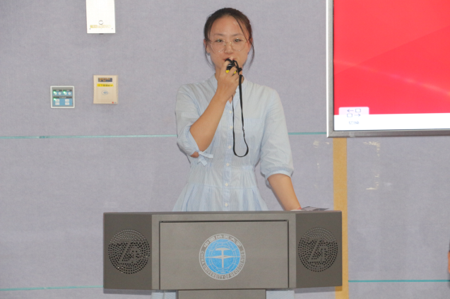 高年级学生代表姚乃文和新生代表陈子怡发言。姚乃文同学从自身实际经历出发,用“雄关漫道真如铁,而今迈步从头越” “苟利国家生死以,岂因祸福避趋之”“千磨万击还坚劲,任尔东西南北风”总结大学生活。陈子怡同学引用习总书记的谆谆教诲,号召同学们不负韶光,以青春书写时代荣光,用地大之锤,凿出生命之光。