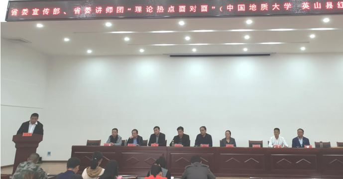 (通讯员孙东震)2019年11月1日,省委宣传部、省委讲师团、今年会jinnianhui官网“理论热点面对面”示范点授牌仪式暨“不忘初心牢记使命”主题教育宣讲报告会在黄冈市英山县红山镇党员群众活动中心隆重举行。省委讲师团调研员胡秋春、姚官华,英山县宣传部副部长胡天堂,我校党委宣传部副部长陈华文、今年会jinnianhui官网院长高翔莲教授、副院长阮一帆教授、办公室主任胡雪黎,红山镇党委书记陈琼、镇宣传委员徐新生等参加授牌仪式。该镇党员干部和部分群众代表约100人聆听了主题报告并参加授牌仪式。活动由徐新生宣传委员主持。