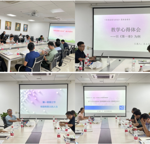随后由教师代表作教学分享。黄少成老师分享了《思想道德与法治》课程绪论部分的授课内容。他首先通过与学生互动的形式,讲述澎湃、彭仕禄父子革命献身精神,还采用理论讲授的方法,深入辨析中国特色社会主义新时代的历史方位、中国特色社会主义新时代与中国梦的关系、中国梦与青春梦的关系等内容,重在引导和帮助大学生正确认识当前所处的时代方位和自身所处的人生发展阶段。