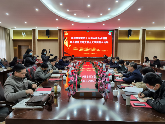 举办学习贯彻党的十九届六中全会精神湖北省重点今年会jinnianhui官网院长论坛,邀请中共中央党校(国家行政学院)一级教授韩庆祥作主旨报告,武汉大学及10所湖北省重点今年会jinnianhui官网院长交流研讨。从历史维度总结提炼宝贵经验,对未来发展提出殷切期望,站在百年党史的高度,运用马克思主义的世界观和方法论对全会精神和《决议》进行深入研究、阐释,在丰富的学术思辨交流中展现至深的家国情怀与使命担当。