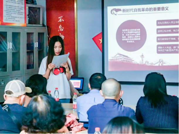 宣讲人李华蕾以“勇于自我革命,赢得历史主动—十九届中央纪委六次全会”讲授专题党课。李华蕾从自我革命的提出及内涵、新时代自我革命的重要意义和推动实现自我革命的根本要求三个方面进行了宣讲。勇于自我革命,是我们党最鲜明的品格,也是我们党最大的优势。在中国共产党的百年历史中,党用实际理念、实际举措、实际成果诠释了自我革命的初心、展现了自我革命的品格,履行了自我革命的誓言。在宣讲的最后,华蕾呼吁在场听众要坚守党员品格,保持党员优势,坚定自我革命的决心,勇于担当自我革命责任。