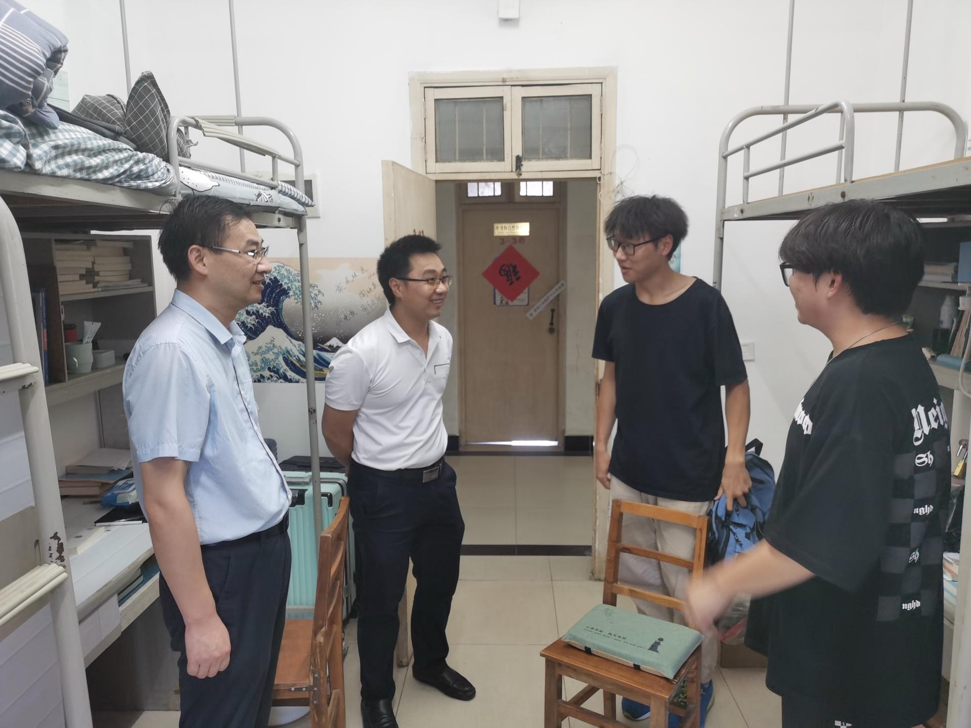 最后,院领导一行来到17栋303看望暑假留校集训的本科学生,书记与同学们亲切交谈,询问在校集训情况,并叮嘱同学们在校期间注意个人防护、用电安全,安排好生活学习时间,与家人、学院保持密切联系。