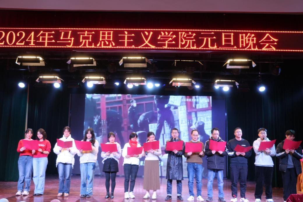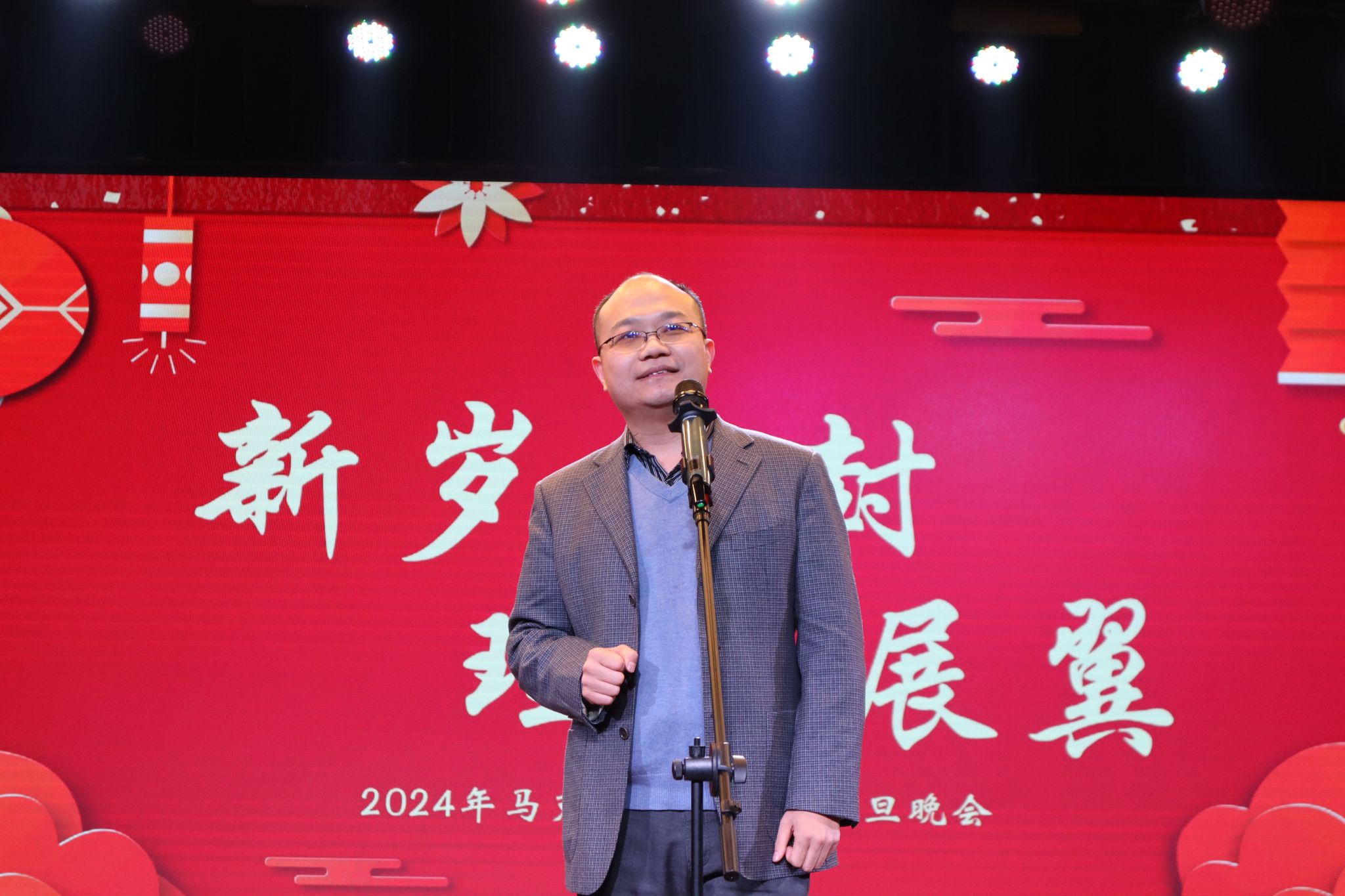 晚会开始前,院长阮一帆致以新年贺词总结2023年今年会jinnianhui官网成就,展现马院担当,深入开展理论宣讲,科学研究硕果累累,学院治理能力和体系稳步推进,基层组织和功能逐步凸显,展望2024将是马院人奋斗收获的新篇章。