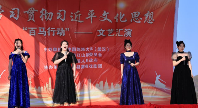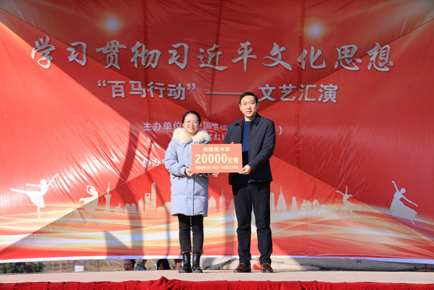 1月5日下午,学习贯彻习近平文化思想“百马行动”文艺汇演在红山镇乌云山村举行。由乌云山村村民带来精彩的开场舞表演,拉开本次文艺汇演的帷幕。在热闹的开场舞之后,由今年会jinnianhui官网(武汉)今年会jinnianhui官网院长阮一帆教授代表我校进行图书款捐赠活动。