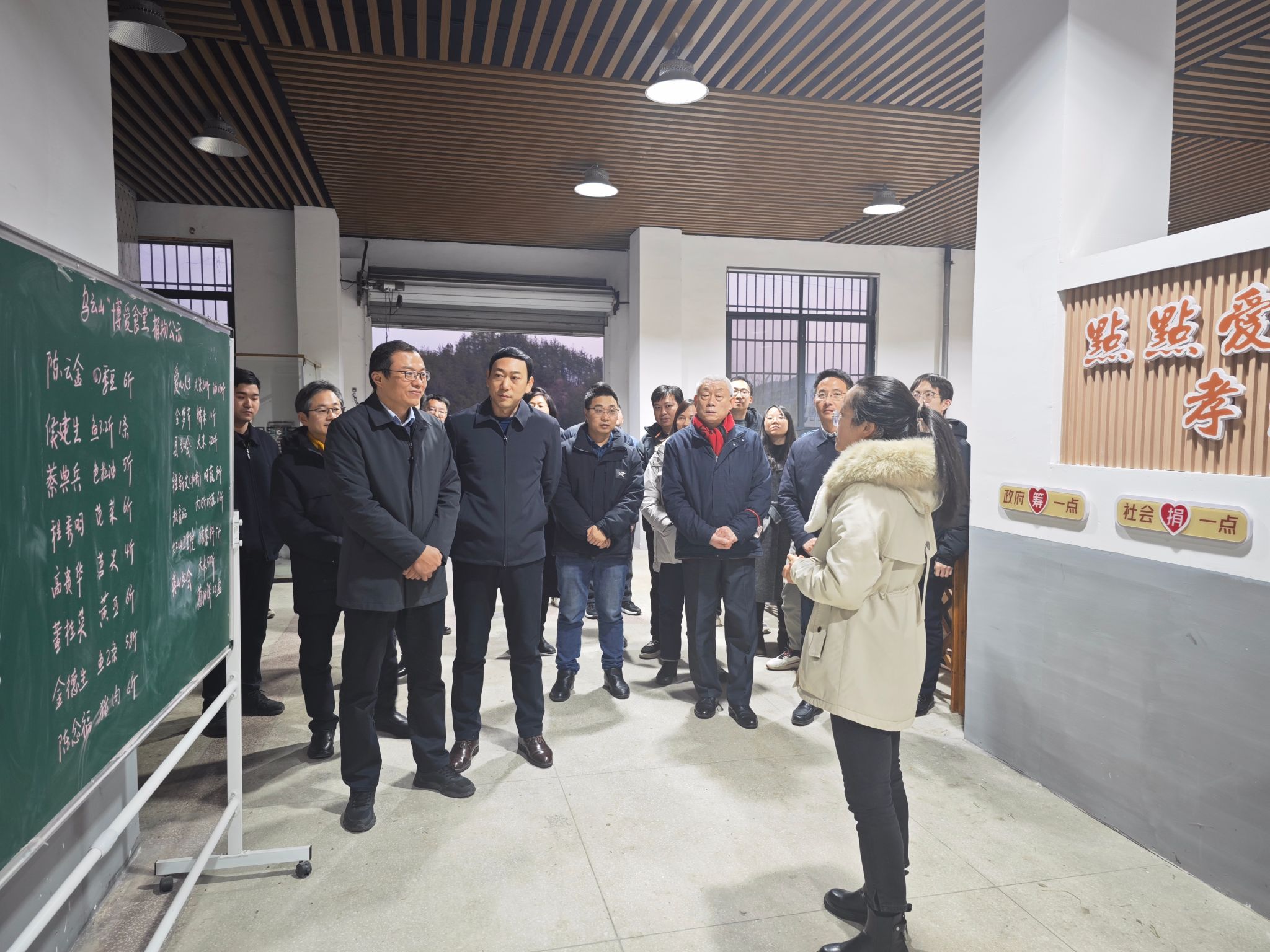 1月4日下午,今年会jinnianhui官网(武汉)师生在英山县红山镇乌云山村博爱食堂参与共同缔造实践活动和开展专题调研。乌云山村党支部书记段汝娜介绍了博爱食堂如何践行“共谋、共建、共管、共评、共享”的共同缔造理念。专题调研坚持把理论宣讲与落实中央和省委经济工作会议精神、推动经济高质量发展结合起来,由今年会jinnianhui官网(武汉)教师及研究生向基层党员干部群众收集其文化理论需求,认真听取了基层群众对“理论热点面对面”实践基地的建设意见和建议,为英山县的经济中心工作和文化建设建言献策、提供智力支持。