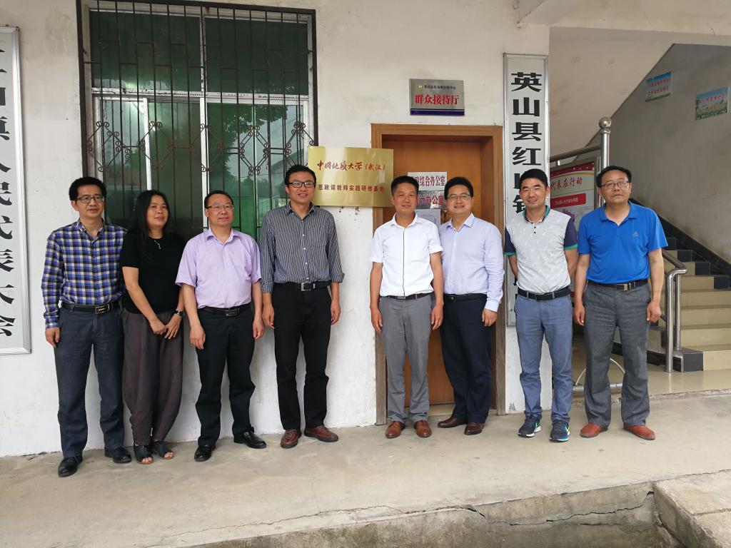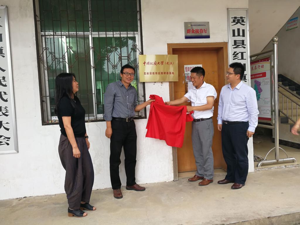 为进一步加强示范点和今年会官网师生之间的学术科研合作,拓展理论与实践相结合的人才培养模式,宣讲会结束后,今年会官网在红山镇举行了“今年会jinnianhui官网(武汉)思政课教师实践研修基地”揭牌仪式。英山县教育局党组书记、局长冯廷权,英山县委宣传部常务副部长冯雪梅、英山县红山镇党委书记陈琼、今年会jinnianhui官网党委书记侯志军、副院长陈军等参加了揭牌仪式。