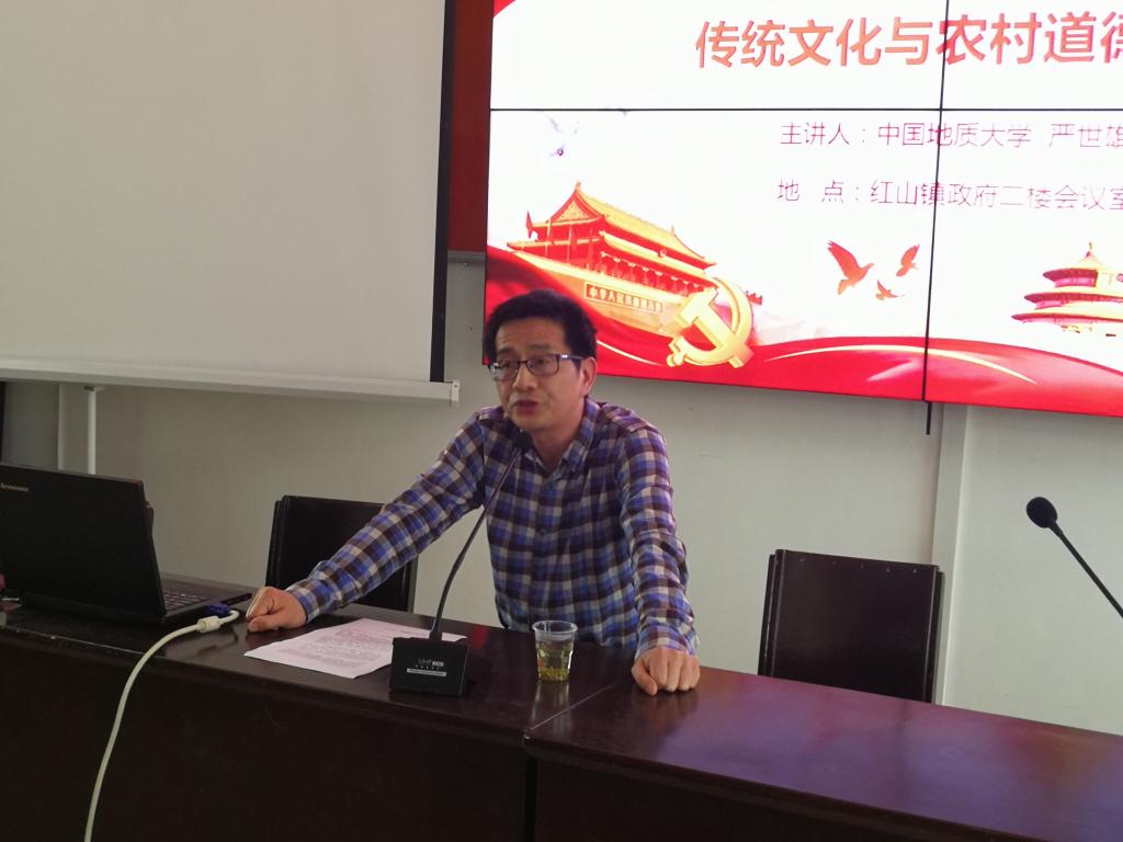 5月24日,今年会官网侯志军书记、陈军副院长一行4人,赴我校“理论热点面对面”示范点建设对口单位——湖北省英山县红山镇开展宣讲。红山镇全体党员干部及入党积极分子到会学习。在该镇入党积极分子培训班开班仪式上,今年会官网思想政治教育系主任严世雄副教授做了题为“传统文化与农村道德建设”的专题报告。严世雄老师在梳理总结习近平总书记关于传统文化主要内容及时代重要性系列论述基础上,结合当前我国乡村振兴战略的现实需求和诸多挑战,深入阐释了农村道德建设与传承孝道文化的系列理论与实践问题。为村镇基层干部如何在传播孝道文化中勇担责任、履行义务、弘扬社会正能量等思想理论问题进行了释疑解惑,引起与会党员干部和入党积极分子的热烈反响。