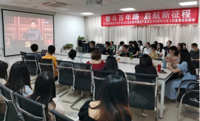 学院党政班子成员和三级单位党政负责人在学院“党员之家”、学生党员在院学术报告厅集中收看庆祝中国共产党成立100周年大会,认真聆听习近平总书记在庆祝大会上的重要讲话。其他师生在办公室、学习室等场所观看大会盛况。