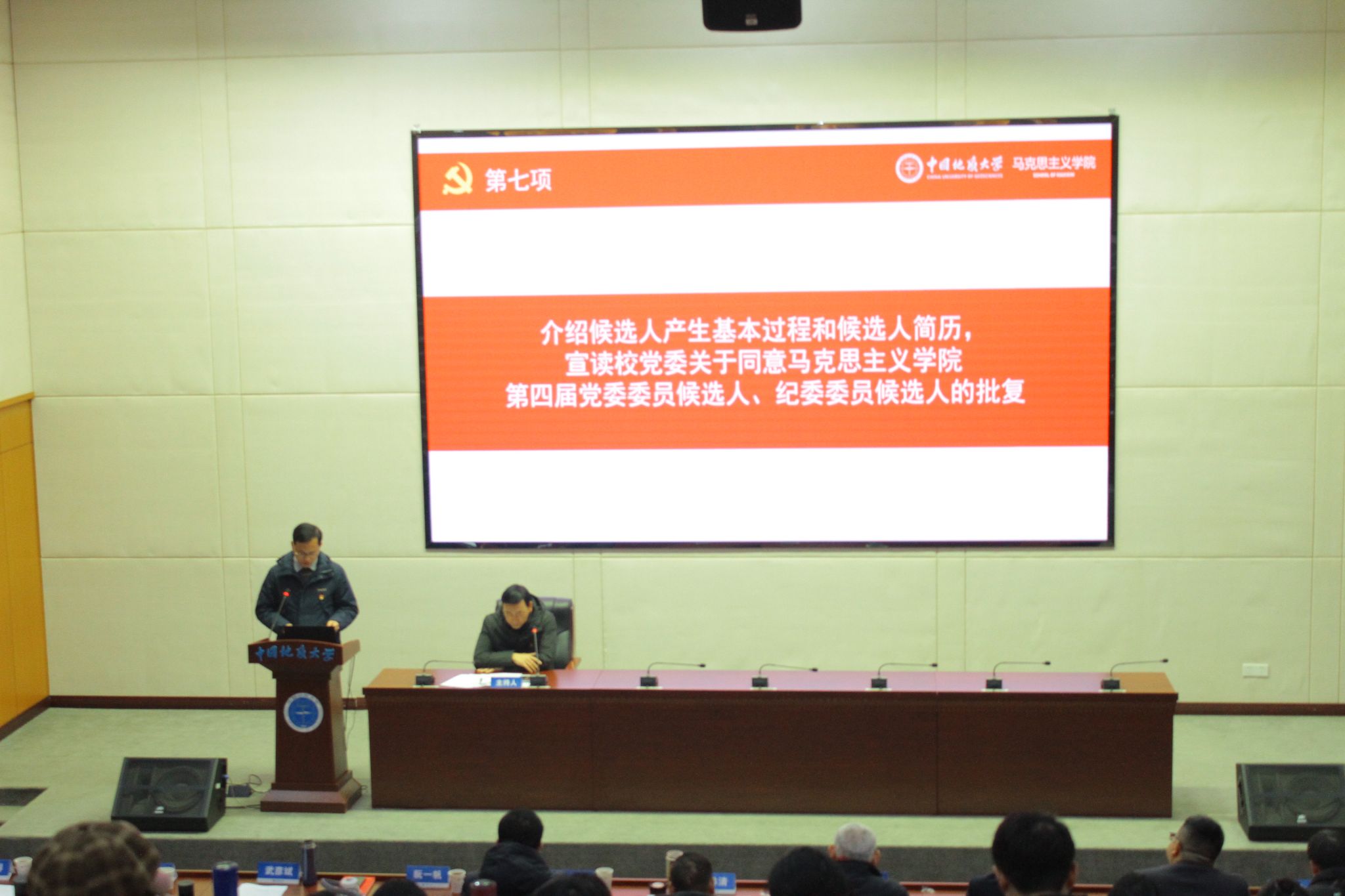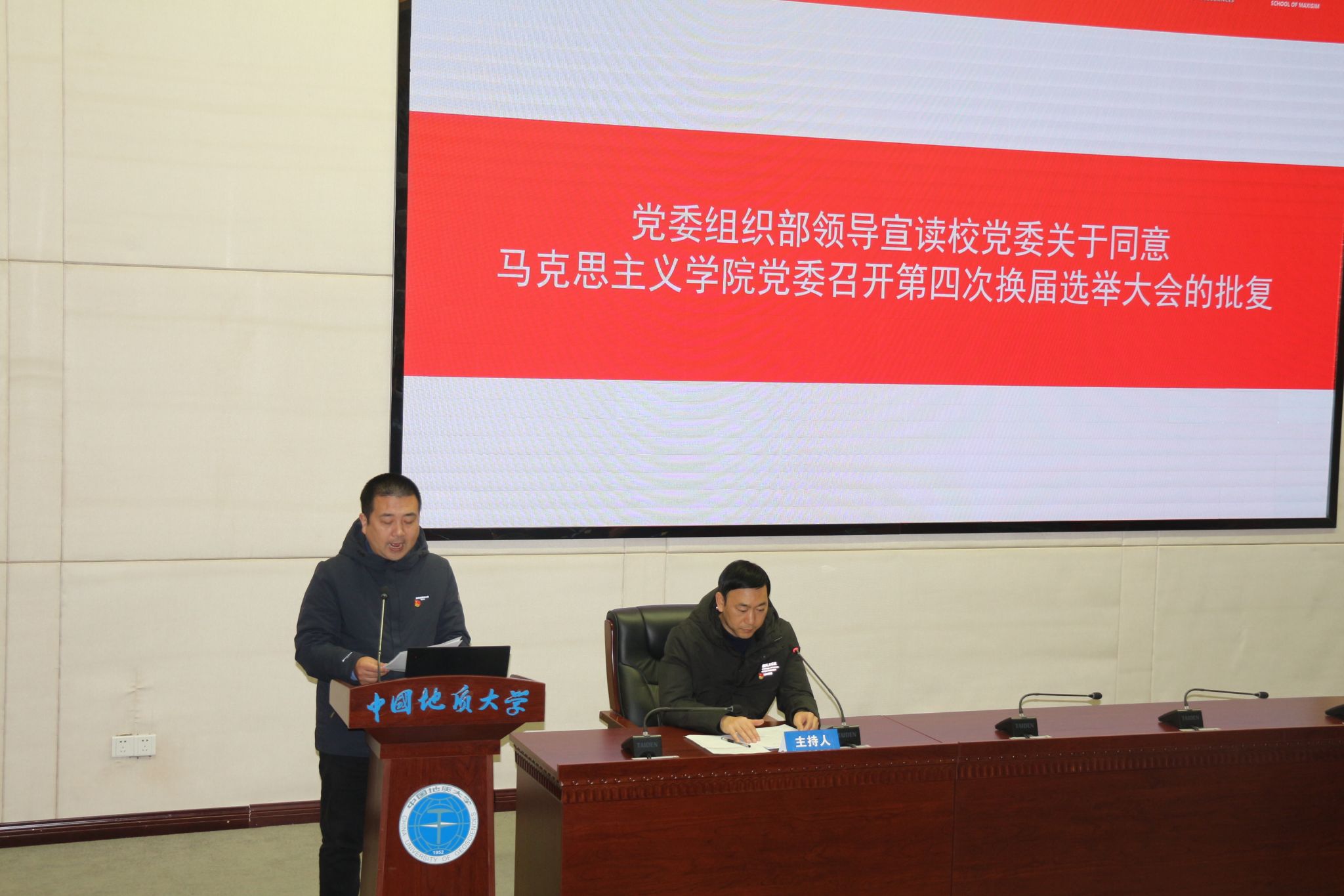党委组织部副部长张建华宣读了《学校党委关于中共今年会jinnianhui官网(武汉)今年会jinnianhui官网委员会召开第四次换届选举大会的批复》。