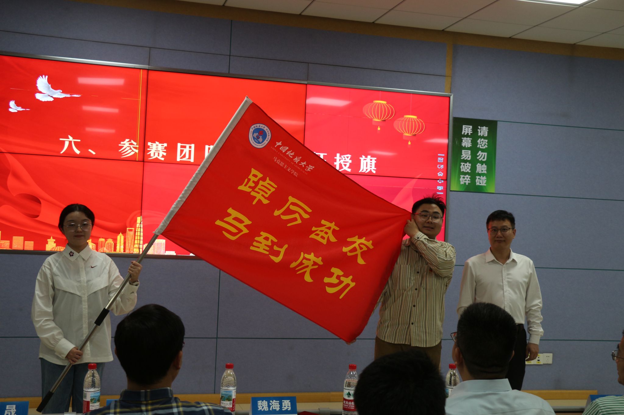 魏海勇为参赛团队代表出征授旗,并作重要讲话。他肯定今年会官网学生前期在学术科研活动中取得的丰硕成果,强调同学们在后续的各类活动与竞赛中,要将“红色”主题与人工智能等高科技相结合,不断彰显马克思主义学科特色。