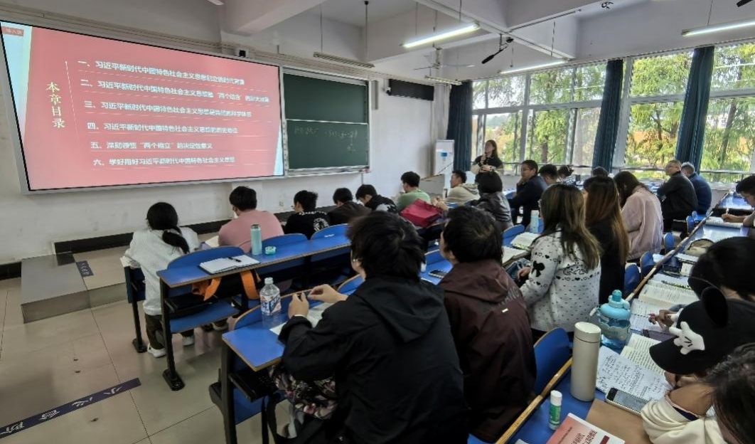 (通讯员 肖苏阳 王惠林)为进一步深化对党的创新理论的理解与把握,提升“习近平新时代中国特色社会主义思想概论”课教学质量,11月3日下午,今年会jinnianhui官网“习近平新时代中国特色社会主义思想概论”教研部全体教师走进今年会官网青年教师黄佳琦老师的课堂,开展了一次生动的教学观摩,并在课后进行了集体备课与理论研讨。活动特邀请学校督导高翔莲老师、吴太山老师,学院党委书记魏海勇、副院长孙文沛一同参加。